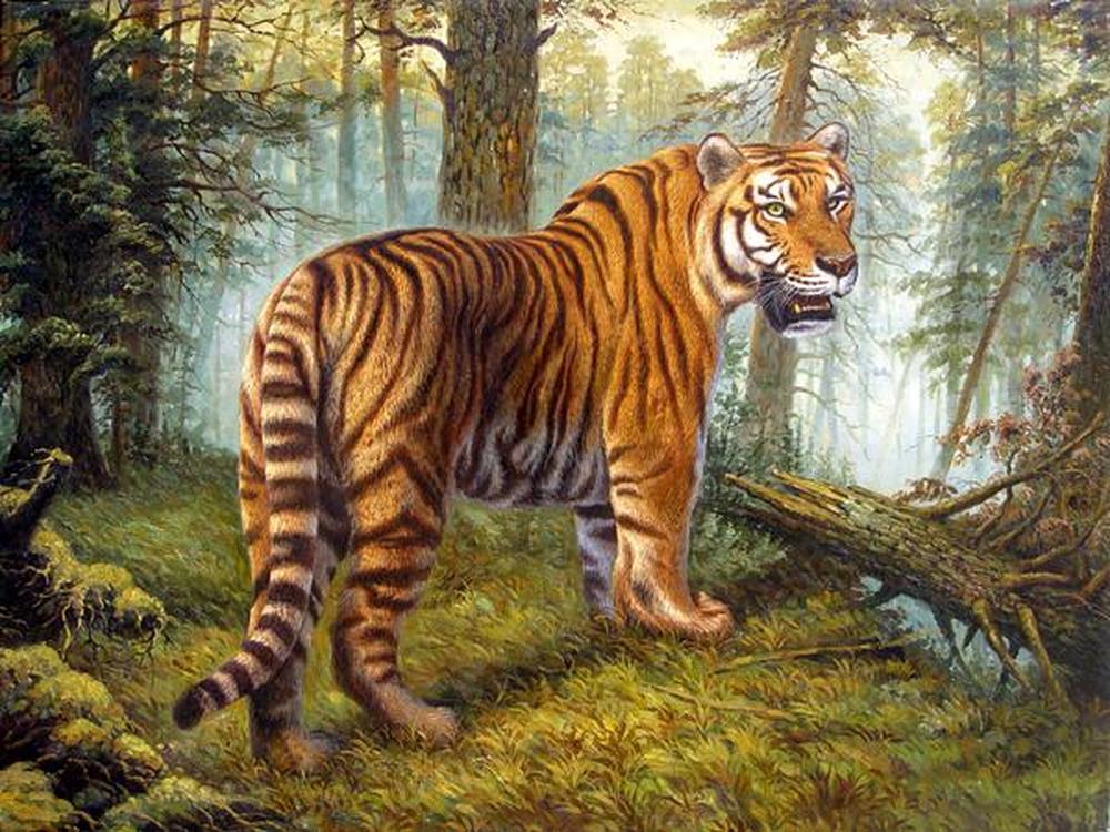 布面油画,虎啸风景。