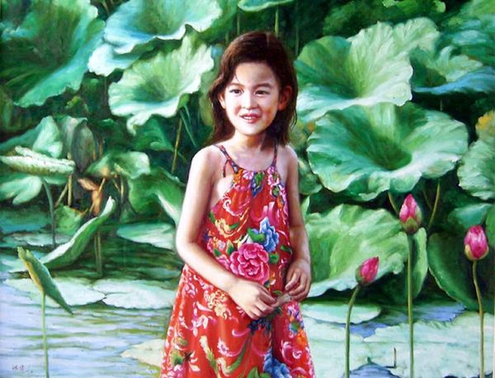 布面油画,小荷才露尖尖角